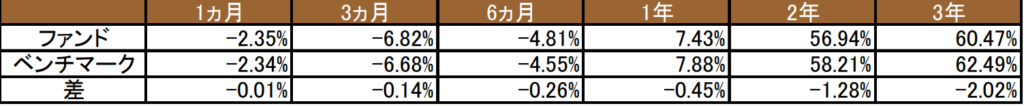 - 直近1年で7.43% 、3年で+60.47%