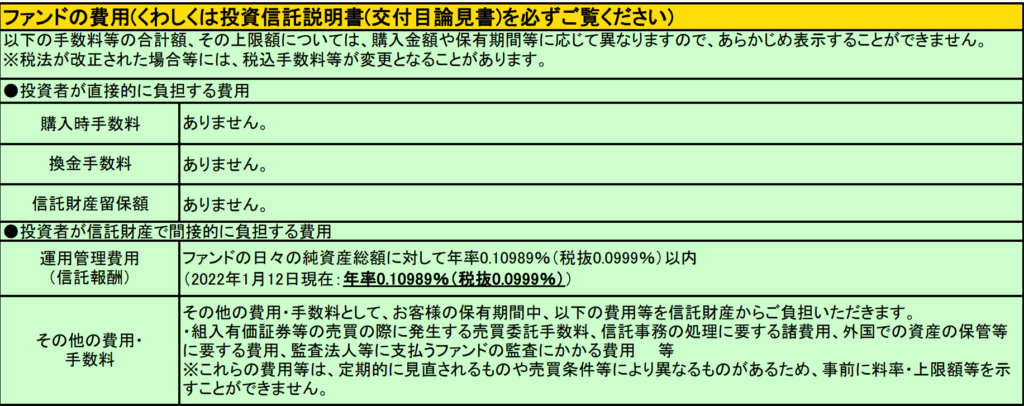購入時手数料は先ほど触れた通りありません。毎年の管理費用は0.10989%程度かかります。