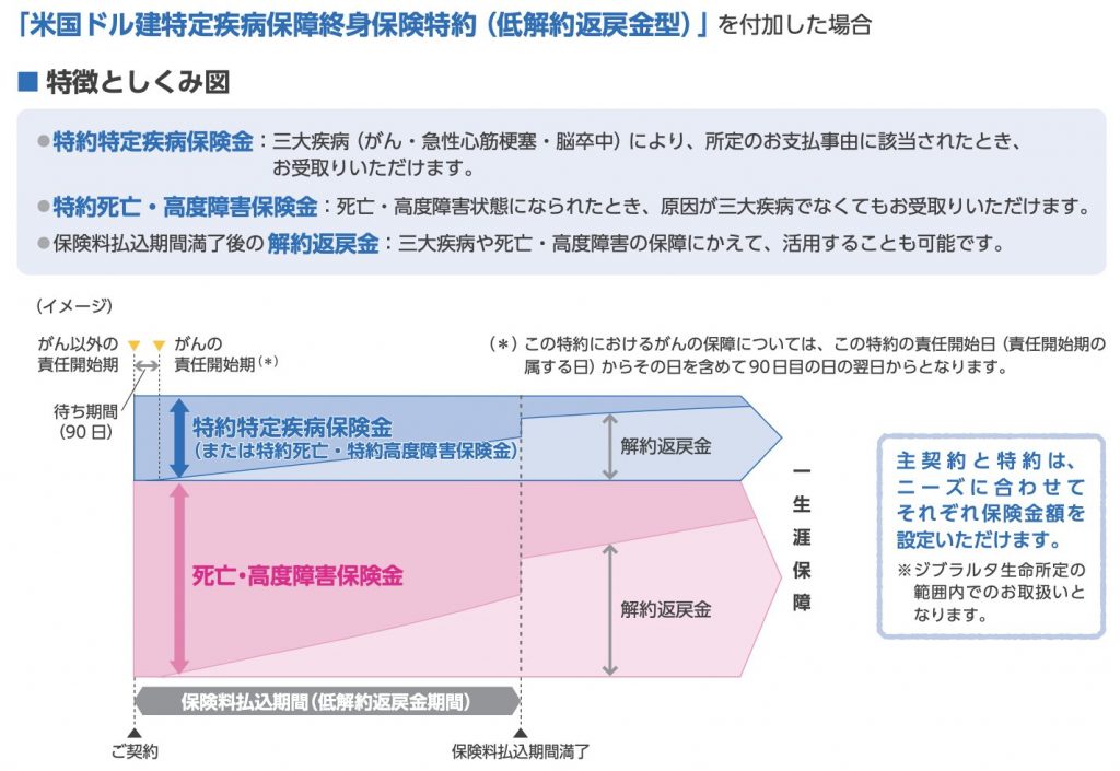 また特約で「米国ドル建特定疾病保障終身保険特約」を付けることができます。