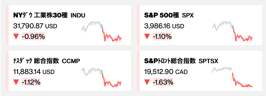 米主要株式指数はそろって3日連続で下落し、約1ヶ月ぶりの安値となりました。