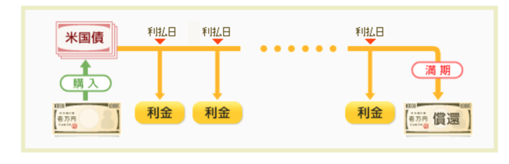 半年に一度、償還日まで金利を受け取ることが出来きますが、この場合の利率は2.750%/年ですので、半年ごとに137.5米ドル受け取ることができるといった具合です。