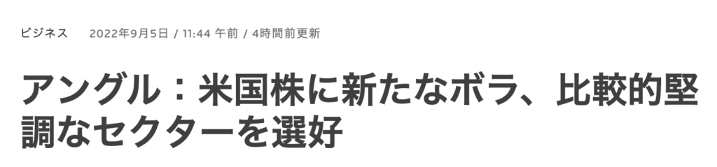 今年に入って18%近く下落しているS&P500インデックスの中で、影響を免れたセクターはほとんどないものの、「生活必需品」、「ヘルスケア」、「公益」などのセクターは、市場全体よりも下落幅が小さくなっており、一部投資家は選好しているとのこと。