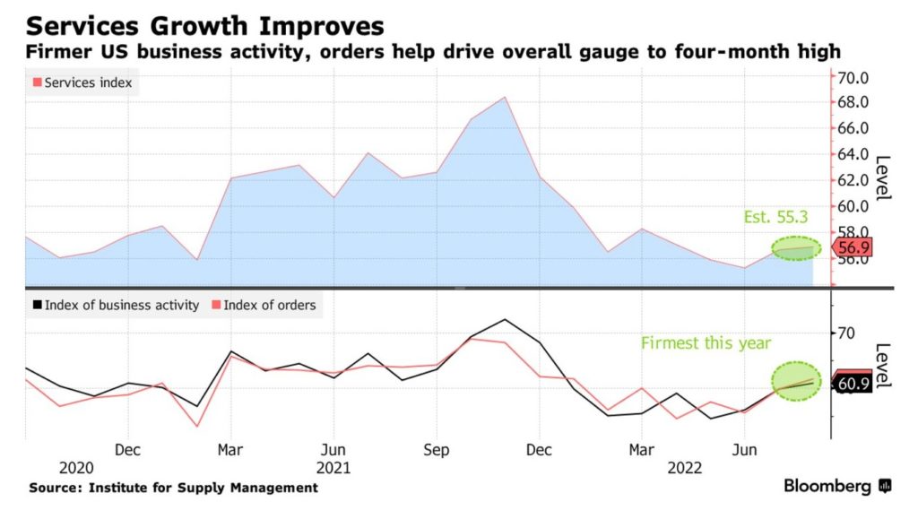 8月の非製造業総合景況指数は56.9で前月の56.7から上昇し、4カ月ぶりの高水準となりました。