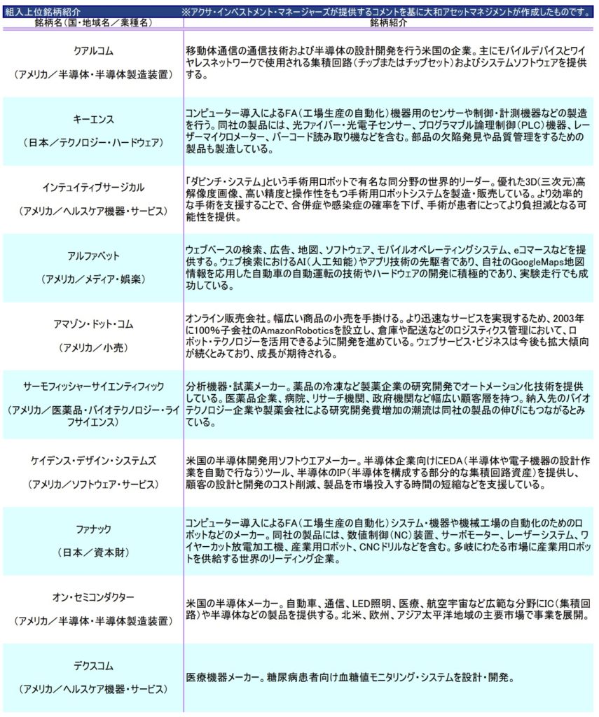 組み入れ銘柄上位に含まれる日本の会社はキーエンスとファナックでしたね。