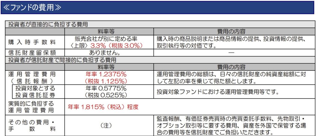購入時手数料は3.3%、毎年の管理費用は1.815%程度かかります。