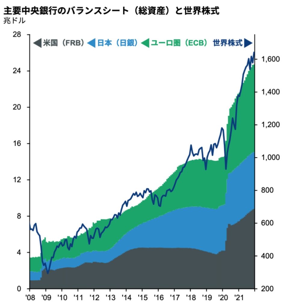 主要中央銀行が供給してきたマネーを吸い上げ始めたら、株価下落につながることが考えられます。
