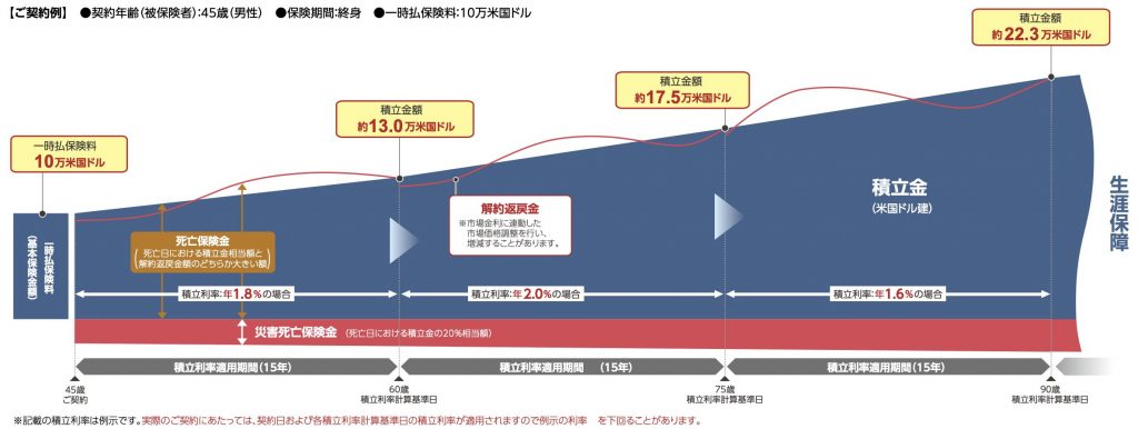 商品名:積立利率更改型一時払終身保険(米国ドル建)