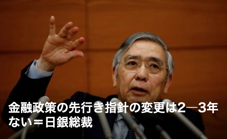 その際、黒田総裁は「当面金利を引き上げるようなことはない」と述べ、また金融政策のフォワードガイダンスの変更についても「当面は必要とは考えていない」。「当面」の期間については数カ月ではなく「2、3年」と述べました。