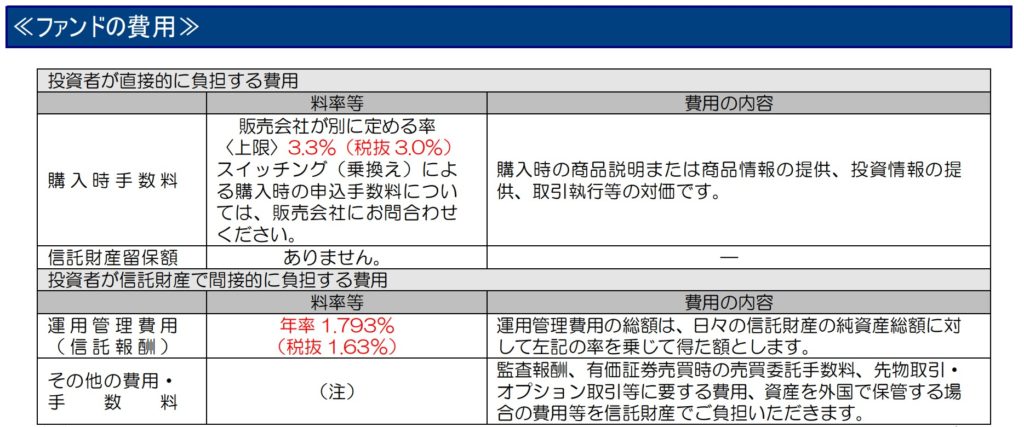 購入時手数料は3.3%、毎年の管理費用は1.793%程度かかります。