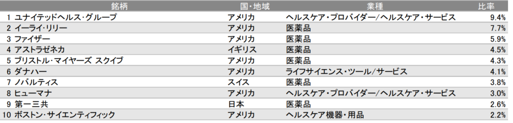 米国のヘルスケア、医薬品大手はかなり比率が大きいですね。日本からは第一三共が入っていますね。
