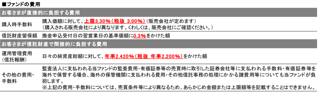 購入時手数料は3.3%、毎年の管理費用は2.420%程度かかります。