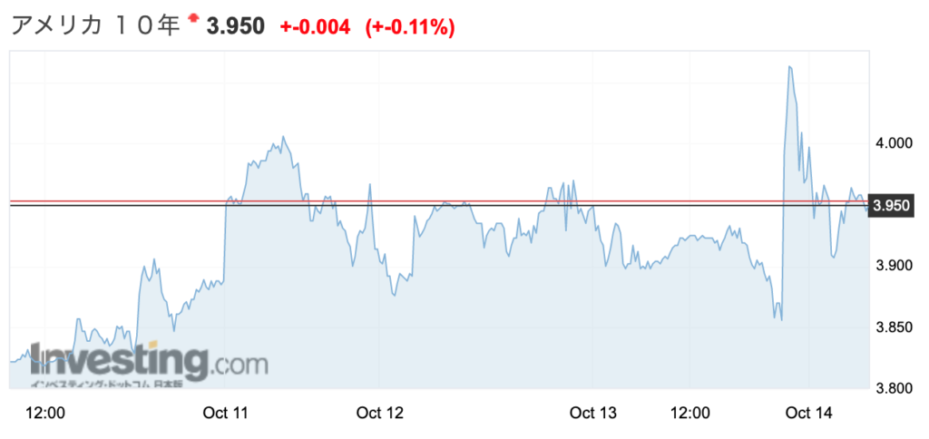 また、CPIの発表を受けて、米10年国債利回りは一時4%を越え、