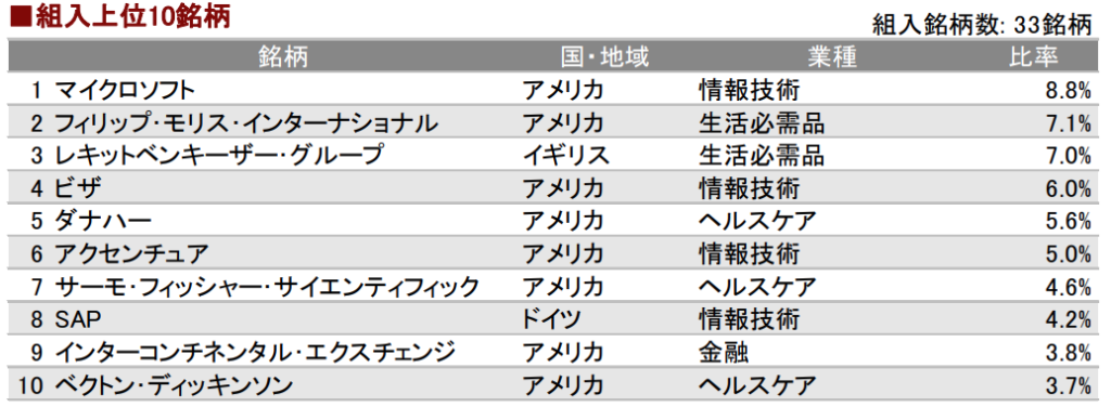 そうですね。次で組み入れ銘柄を見てきましょう。