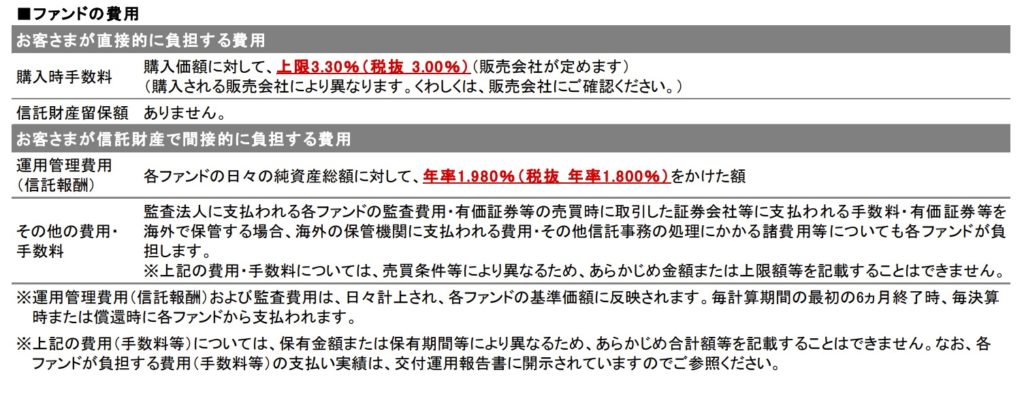 購入時手数料は3.3%、毎年の管理費用は1.98%程度かかります。