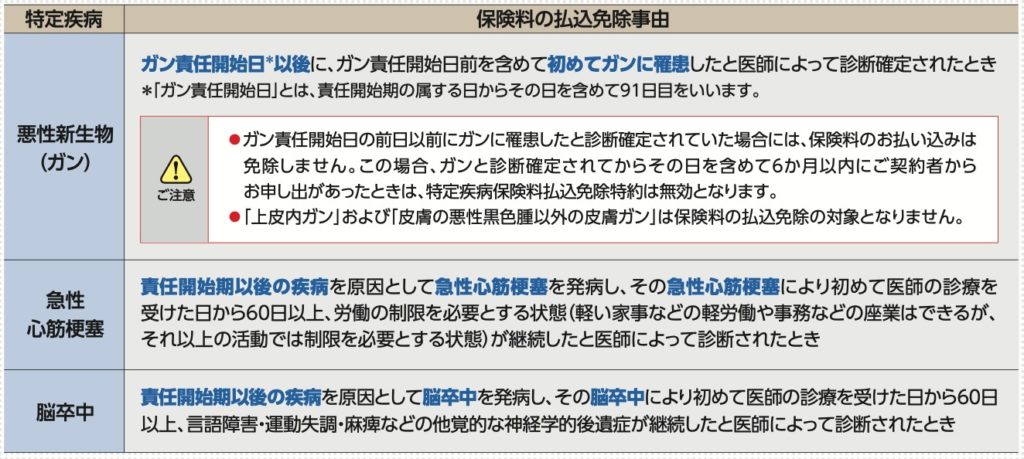 下記のいずれかの事由に該当された場合、保険料の払込が免除されます。