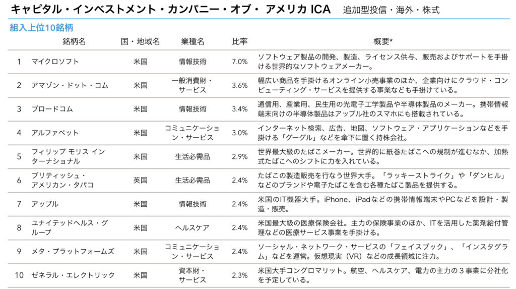 本日は『キャピタル・インベストメント・カンパニー・オブ・ アメリカ ICA』を解説します。数多くある米株ファンドなので、他のファンドと比べて良い数字となっているかどうかですね。