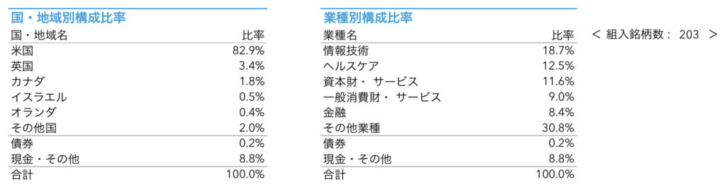 業種別ではハイテクが18.7%と少なめです。その他業種とはなんでしょうか?一番比重が大きいのに詳しい記載がありません。