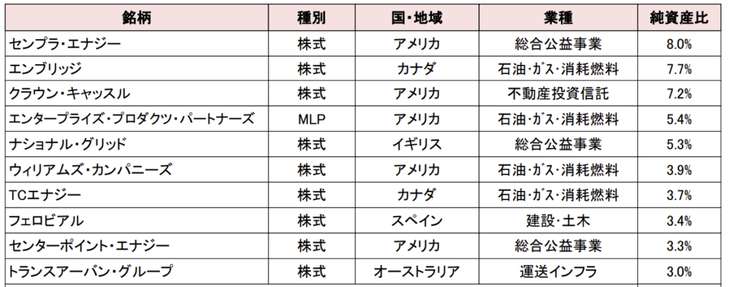 世界各国のインフラ関連企業の株式やその他関連する上場金融商品に投資します。MLPはREITに近い形態ですね。