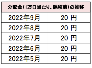 分配金は毎月に20円出ており、安定しています。