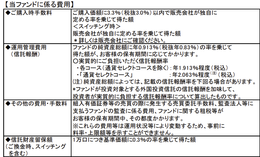 購入時手数料は3.3%、毎年の管理費用は1.913%~2.063%程度かかります。