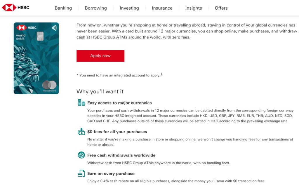 HSBC Mastercard® Debit Cardはホームページから簡単に申請することができます。
