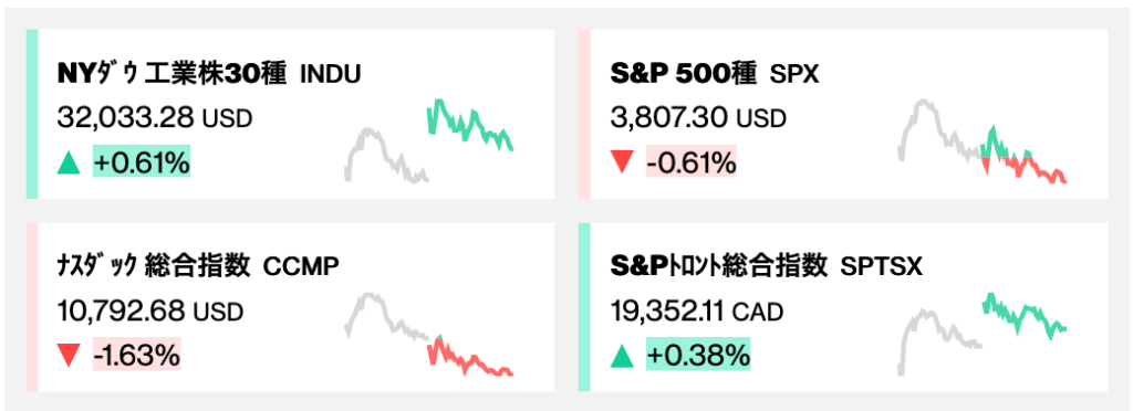 企業決算をうけ、米主要株式指数もNYダウ工業株30種は上昇しましたが、ハイテク株などが多いナスダック総合指数とS&P500種は下落しました。