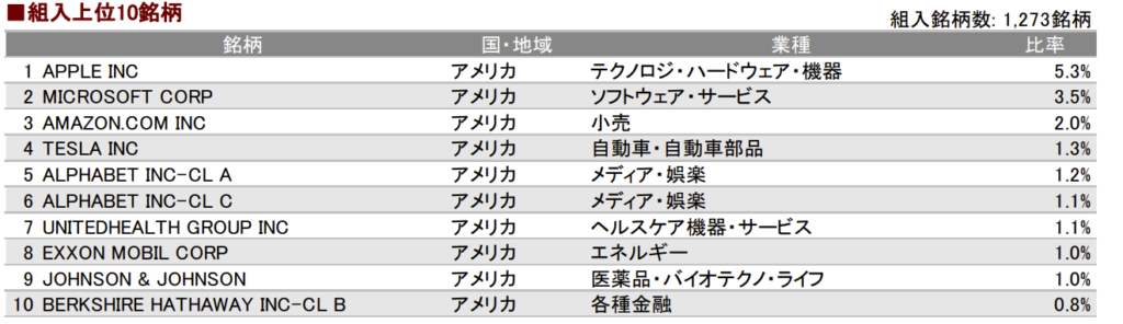 組み入れ上位は米国株で、誰でも知っている会社が多いですね。