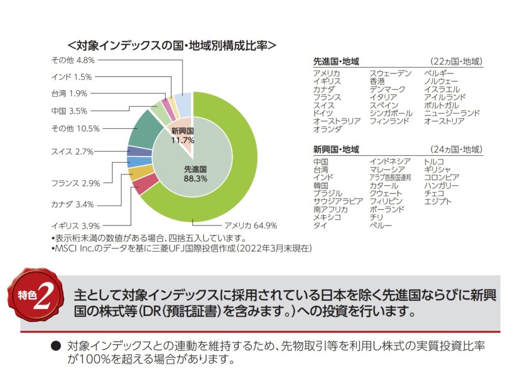 - 三菱UFJ国際投信「eMAXISSlim全世界株式(除く日本)」は日本以外の全世界株式に投資するインデックスファンド