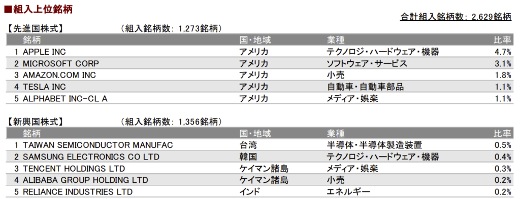 eMAXISSlimシリーズの米国株式、全世界株式の組み入れ上位はほとんど変わりませんね。