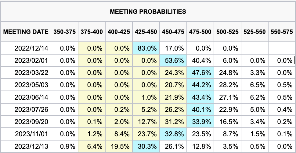 今のところ、来年2月に0.25%、3月にも0.25%を利上げして、ターミナルレート(最終到達点)は4.75~5.00%になる予測が優勢です。