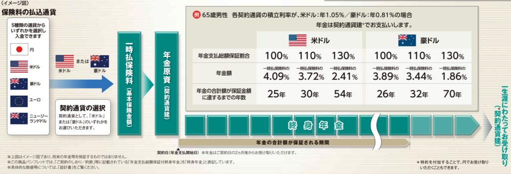• 生きてる限り年金が受け取れる一時払外貨建個人年金