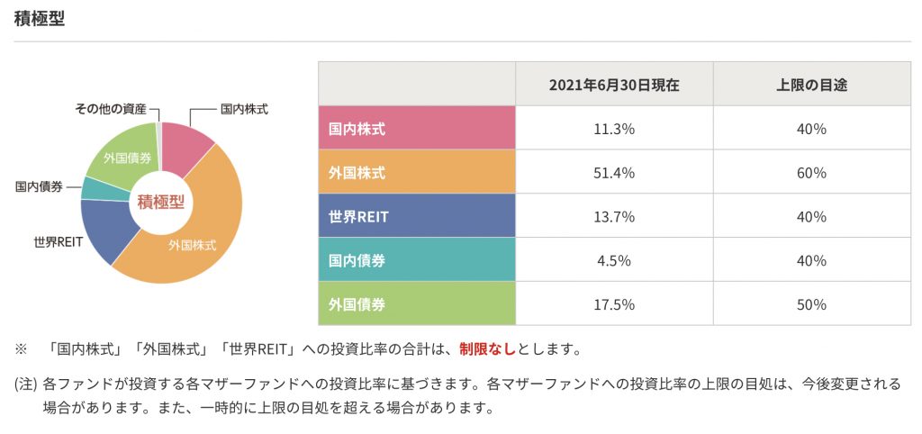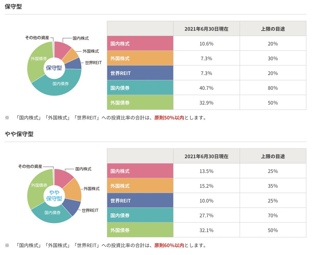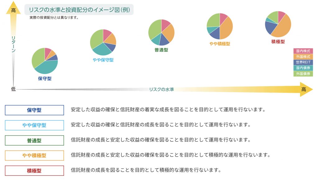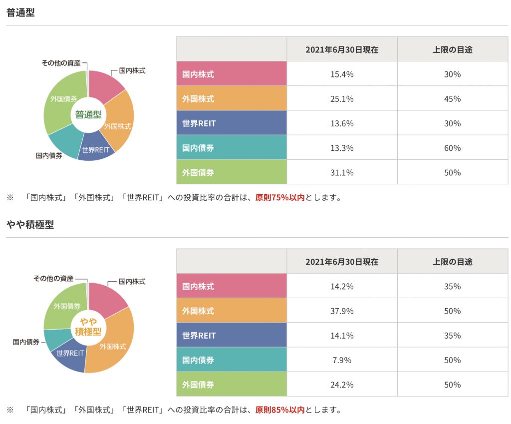 そしてそれぞれのタイプによってこちらのように投資先ポートフォリオが決められます。