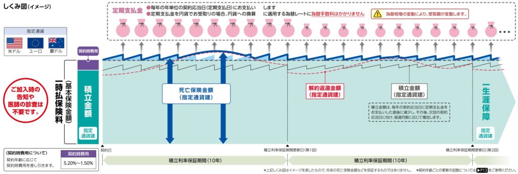 正式名称:定期支払金付積立利率変動型終身保険(通貨指定型)