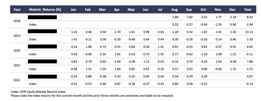 • 低リスク:マーケットニュートラル戦略を利用した低リスクファンド