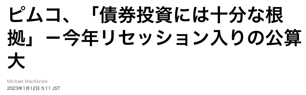 PIMCO(パシフィック・インベストメント・マネジメント)は最新のリポートで、今年は「緩やかなリセッションとインフレ緩和」を描いており、債券市場は「魅力的なリターンと下振れリスクからの逃避という両方から恩恵を受ける可能性がある」環境下にあるとの見解を示しました。