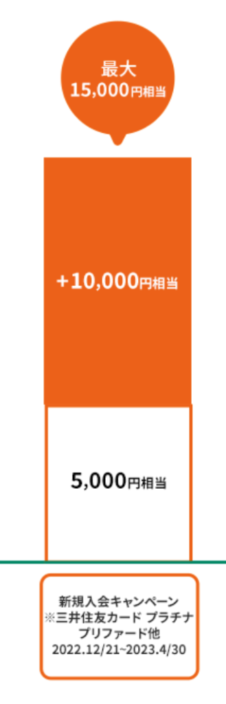 三井住友カード プラチナプリファードの場合は、最大15,000円相当になり、