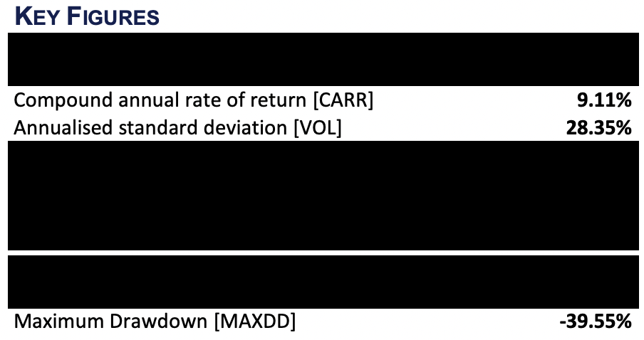 長期的な年平均リターンが9%以上、年平均リスクは約28%、そして最大下落率も–40%近くと、ハイリスクであることが分かります。ただし運用成績を見てもらえればお分かりのように、プラス運用で終えた年が多いため、このファンドが長く続き、人気であることがお分かりいただけるかと思います。