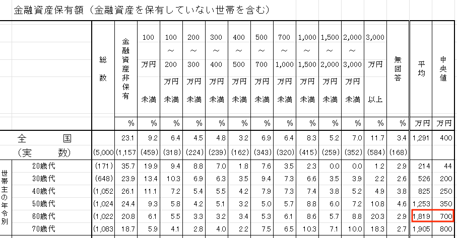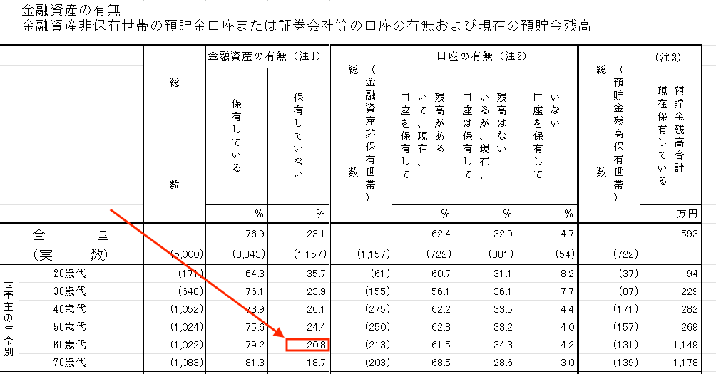 60代で金融資産ゼロの世帯が予想以上
