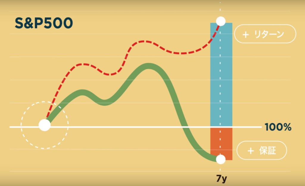 まず簡単なのがS&P500という米国株インデックスに投資をしている元本確保型ファンドです。