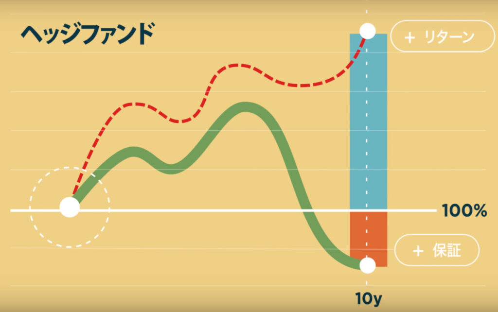 次に同じく満期時に元本を保証してもらった上で、資産残高3兆円、年平均15%超のヘッジファンドに投資をできる元本確保型ファンドもあります。