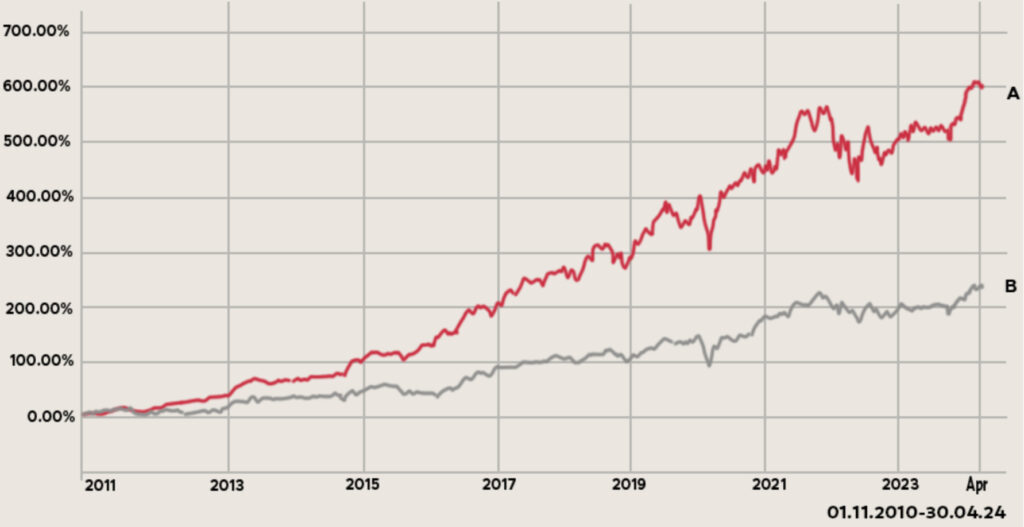 2023年だけで見ても、S&P500の3倍上昇しています。