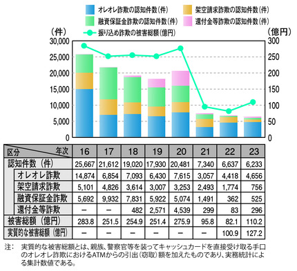 警察官役など登場人物も出てきたり、様々な口実で信じ込ませようとしています。なお、いまだに1年で100億円規模の被害額があるそうです。
