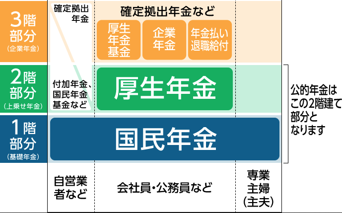 1. **基礎年金部分**: 日本の公的年金制度では、基礎年金(国民年金)部分が全ての被保険者に支給されます。基礎年金の満額は、約65,000円/月(2023年時点)です。厚生年金受給者はこの基礎年金に加えて、報酬比例部分の厚生年金が支給されます。