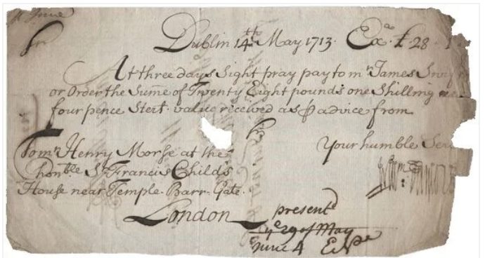 ゴールド・スミスは、商人たちから金を預かり、「預り証」を発行し、商人は決済が必要なときに預り証を持って行き、金を金庫から出してもらっていました。