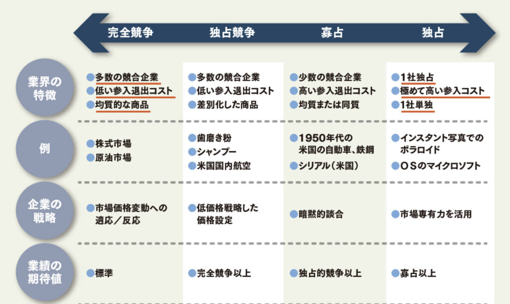 • 寡占市場:少数の大企業が市場を支配している状況。