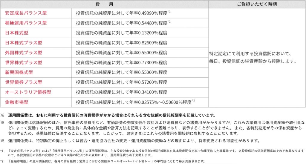 運用関係費とは、特別勘定運営費や信託報酬などを含めた諸費用が積立金から控除されます。
