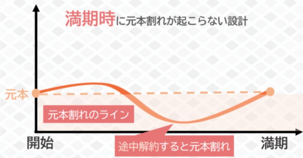 運用期間中、価格が元本を下回っているタイミングで解約をしてしまいますと元本割れとなってしまいますが、満期まで保有していれば元本は確保されます。