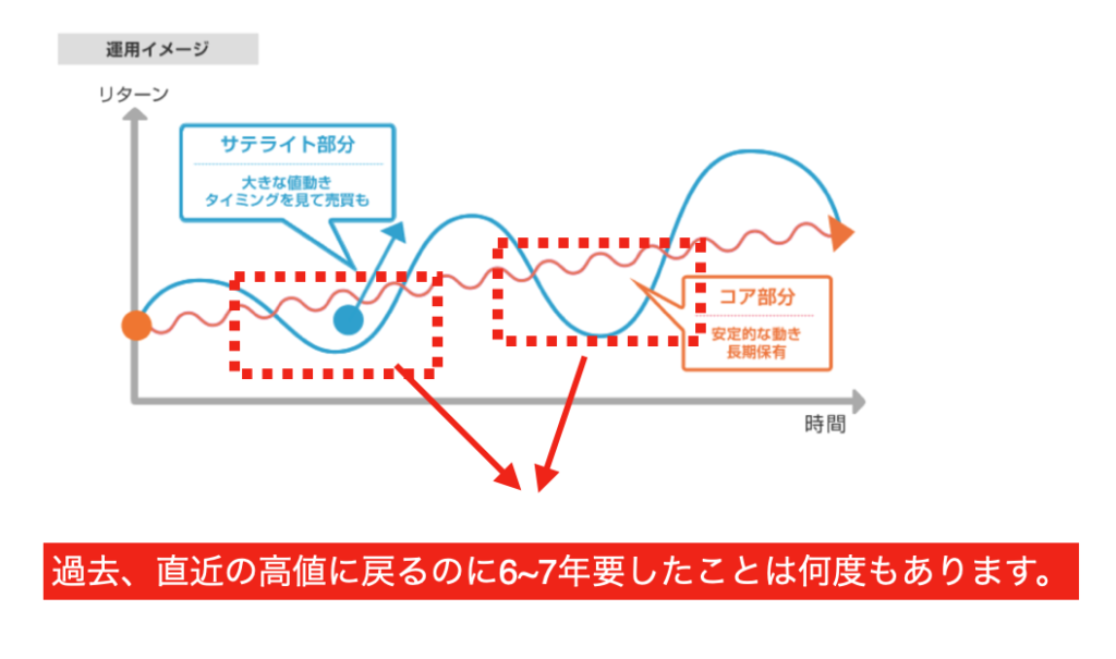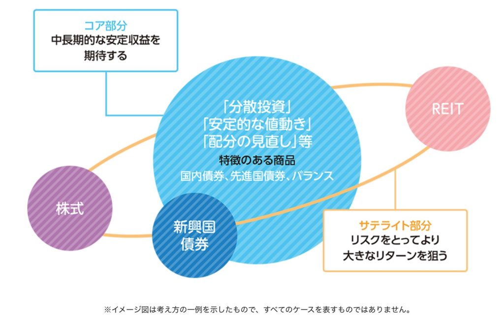 「コア」部分は安定的にリターンを得られる資産クラスで運用していき、