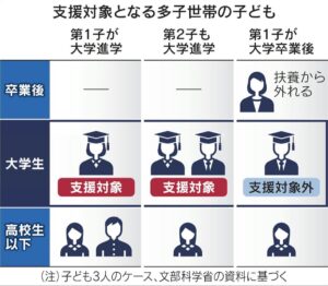 大学無償化、子ども3人以上に所得制限なく上限70万円